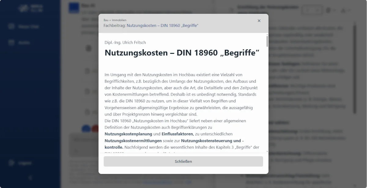 WEKA Bau AI greift auf eine umfassende Wissensdatenbank von Fachexperten erstellten Artikeln zu und liefert fundierte, praxisorientierte Antworten auf Ihre Fragen.